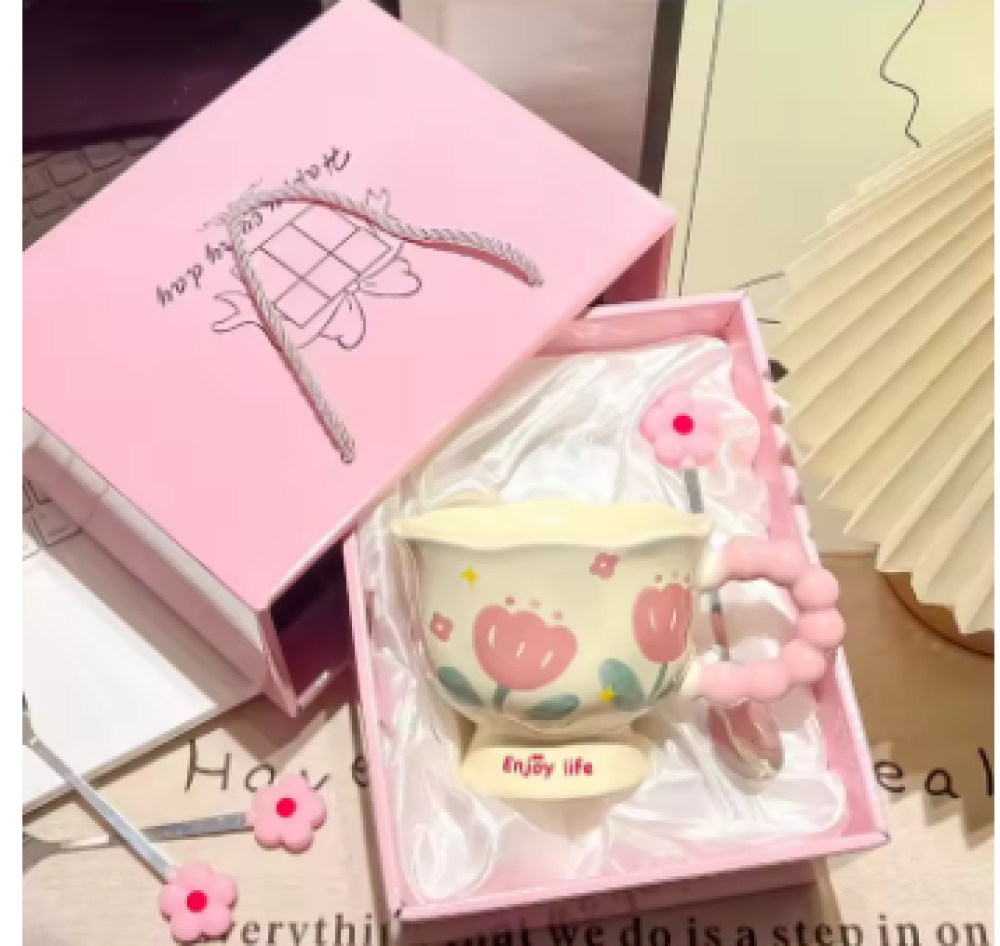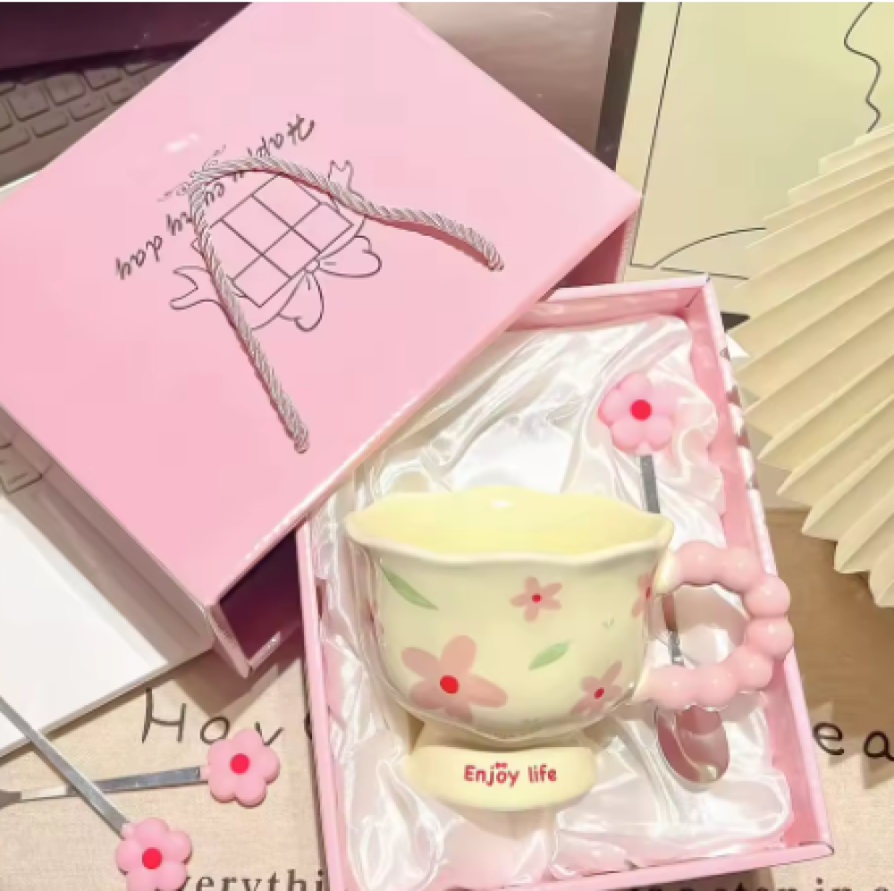 كوب سيراميك ملون فريد مناسب كهديّة عيد ميلاد مميزة للفتيات، مثالي لفنجان القهوة أو كوب ماء، يجمع بين التصميم الإبداعي والجودة العالية للاستخدام اليومي في المنزل.